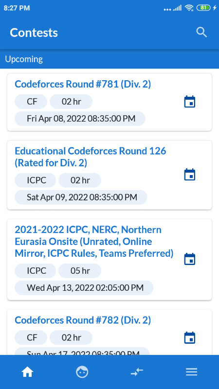 Disclaimer: This is not an official app from codeforces and not affialted with it