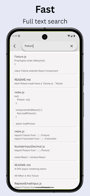 - Code is efficiently indexed locally, providing a powerful full-text search over the entire codebase.