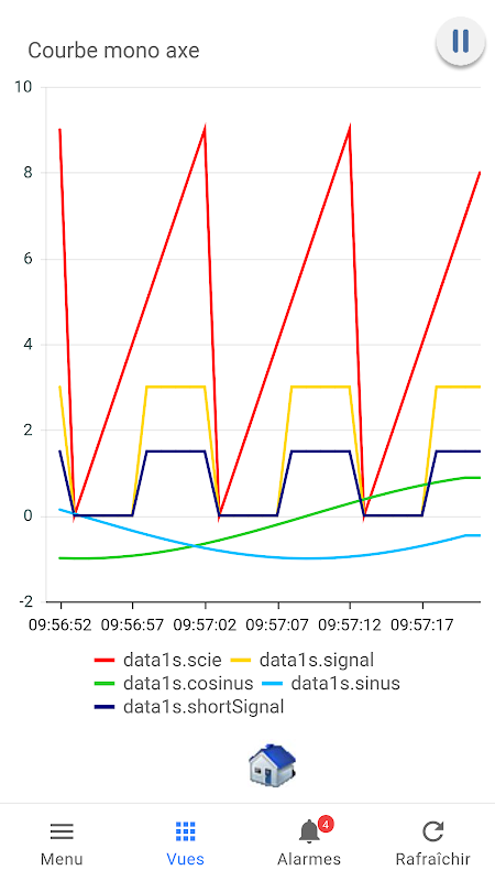 The "Trend drawing mimic Tile" allows you to display a trend area with 1 to 5 data in a mobile view. The trend is automatically refreshed to show the evolution of the data.
