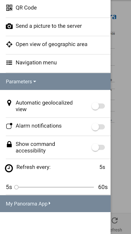 Important note: Before any use, Panorama Mobile requires access to one of your Panorama E2 servers or an account provided by Codra.