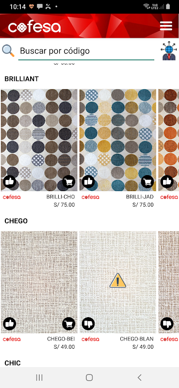 With this application you can know in real time the available stock COFESA Textile, just type the code indicated below nuesros samples catalogs. As well as ordering and request deliverys.
