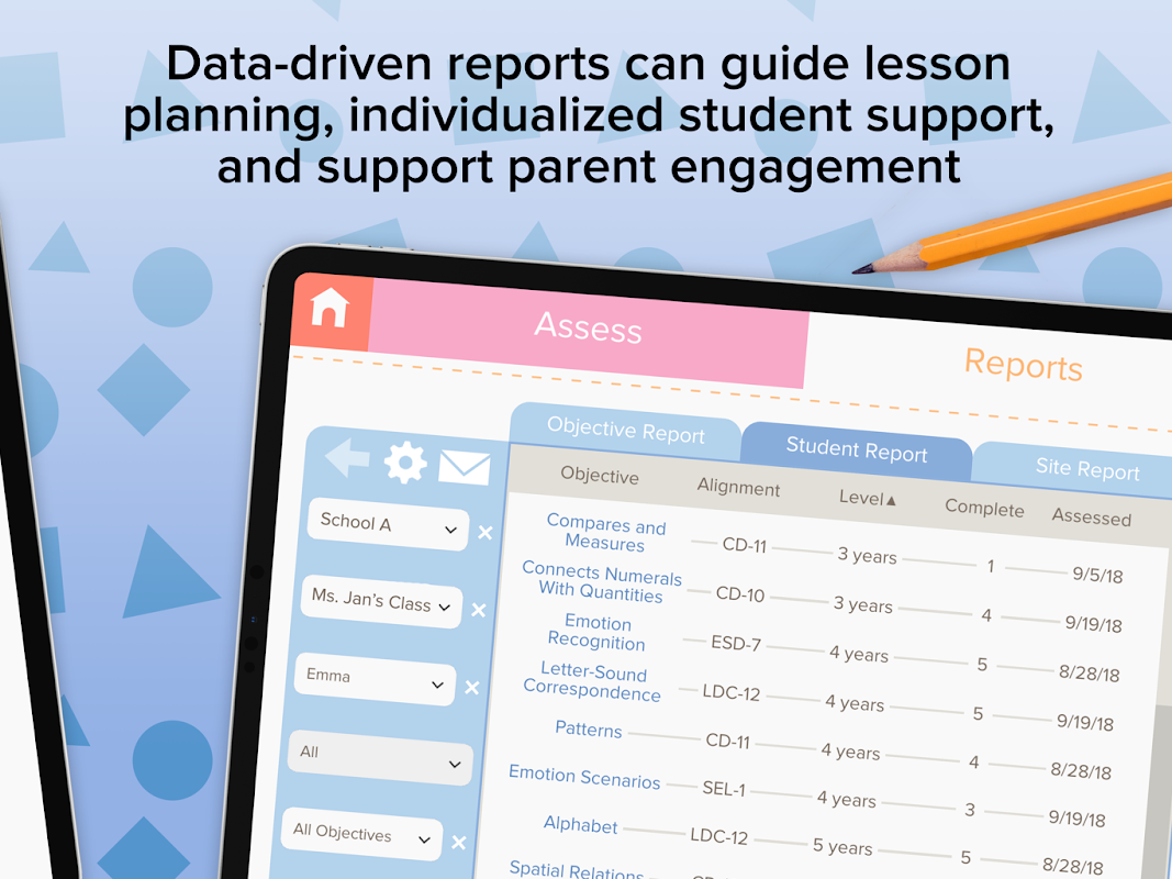 -Provides data-driven reports to guide lesson planning, individualized student support, and encourage parent engagement.