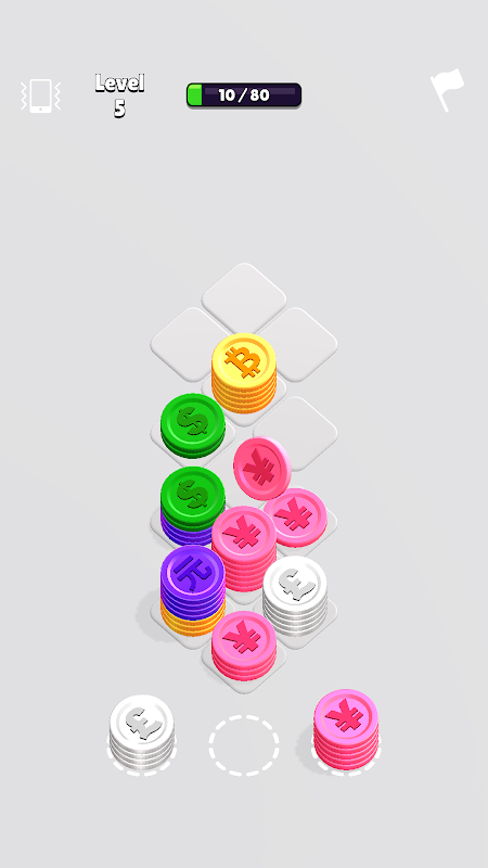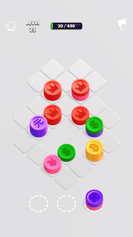 Play challenging levels and test your skills! Clear slots by stacking 8 same-colored coins. Make combos to skyrocket your score! Download now for addictive stacking fun!