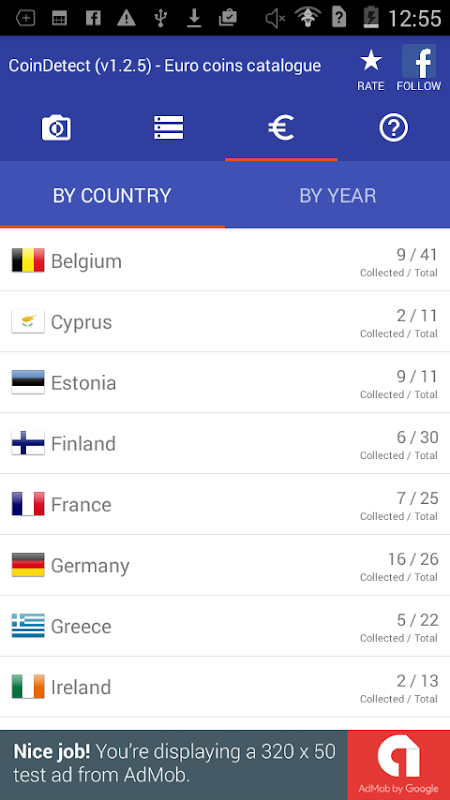 Use your phone camera for euro coin recognition, build your euro coin collection