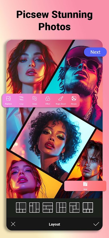 Variety of instant grid layouts and templates to choose from. Create a square photo collage in seconds with grid feature. Just select several pictures, collage maker will remix them into unique photo collage. You can pick the layout you like, edit collage with filter, sticker and text. Combine up to 9 photos to create pic collage, you can rotate pictures, adjust frames, edit border of collage, change background color as you like.