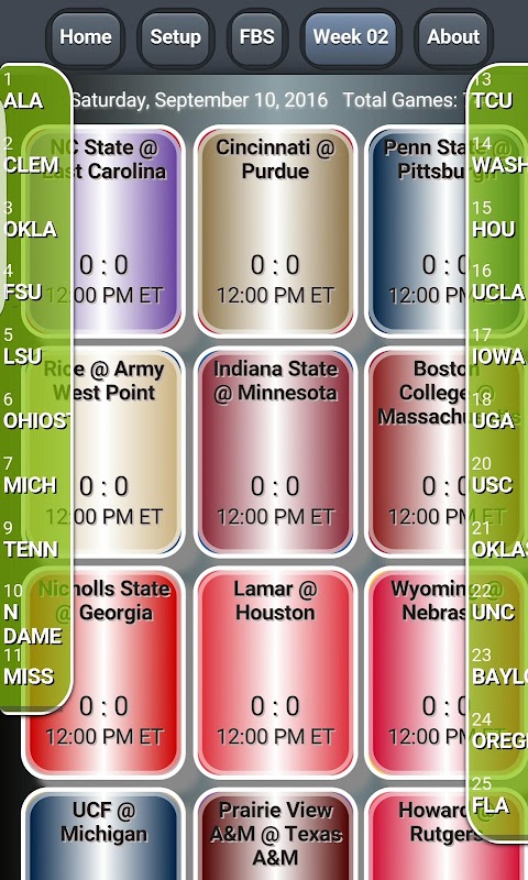 A top25 team sidebar allow you to go straight to the team to check the game information.