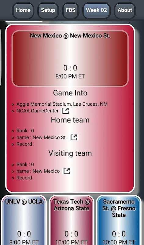 Scores and schedules of each week college football games: FBS, FCS, D2 and D3.