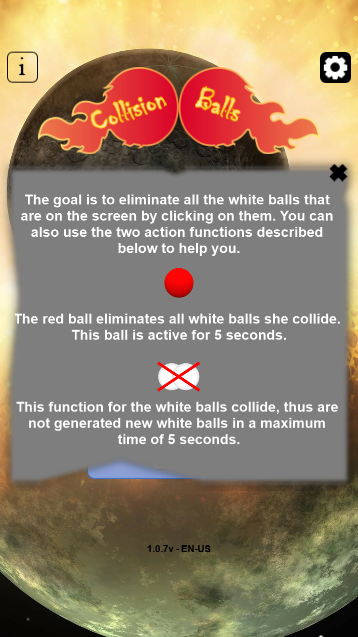 Collision Balls: Try to go as far as possible by removing all the white balls from the screen. Recalling that the acada collision between a new white balls is created.