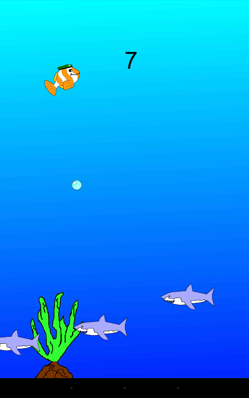 Help Colonel Clownfish dodge sharks and eat burgers, but be careful, eating too many burgers might make dodging more difficult!