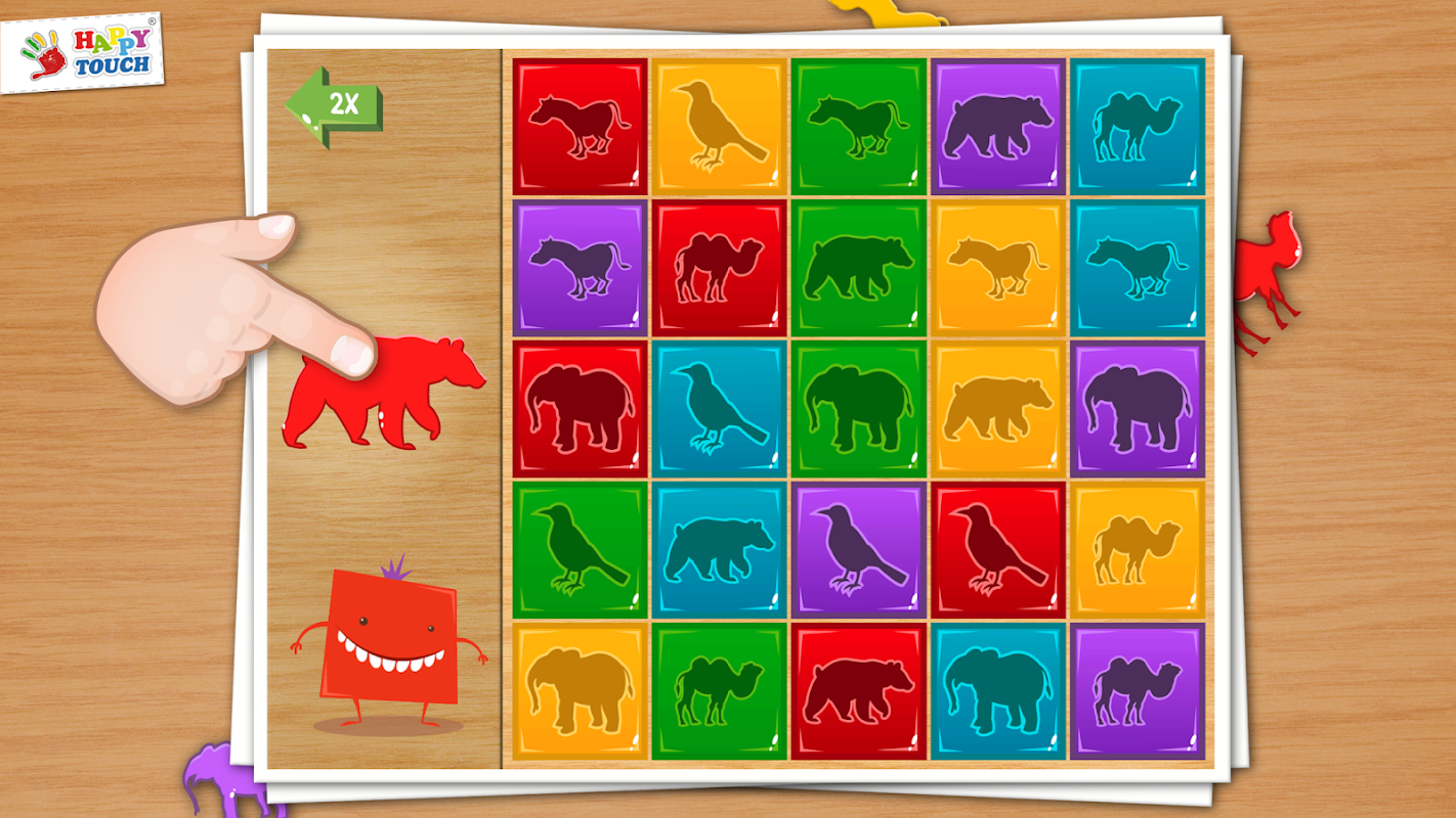Because of a wide choice of levels of difficulty, you can choose easily the right one for your child. During playing, the kids learn to differentiate and assign colors and shapes of simple geometric figures and shapes of animals. The puzzles rearranges itself round by round and the games stays exciting for your child.
