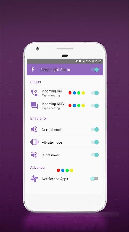 Get a Brightest color flashlight for every SMS alert with a color alert for Facebook, Messenger, SMS, Gmail and any application of your choice. With this color flash alert app, receive a flash text notification and color flash alerts for calls with color LEDs, receive a flash color alert notification for calls and SMS or SMS. With our app, you can be alerted of all notifications from other apps.