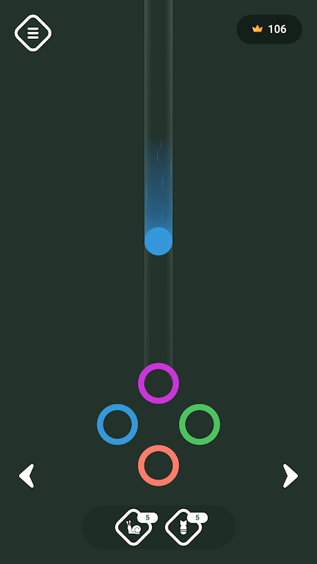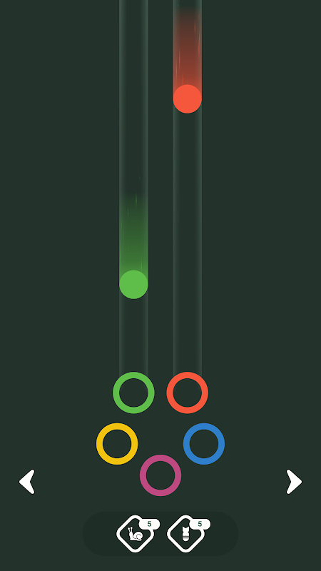 Start with 2 colors and 1 path. Rotate the rings to match each falling ball. As your score rises, the game adds more colors (up to 5) and falling paths (up to 3), and the balls speed up. One wrong match, and it’s game over! Can you keep up?