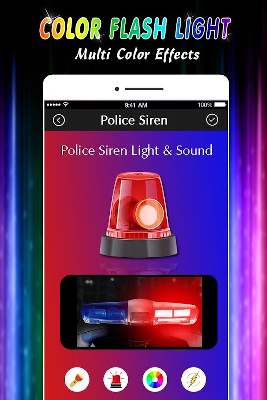Use your camera flash to get the brightest flashlight or color effects for an incredible color change of the lights. This application is one of our many free apps and one of the best apps for android on the market. If you're a fan of police and crime stories you can use police lights on your screen to simulate the real ones. Whatever you choose, you are guaranteed to have fun with this awesome phone flashlight app.