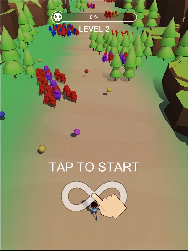 Press to move away from the little monster, release your finger to destroy the monster in front.