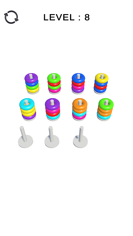 Color Hoop Stack is a fun brain teaser that aims to collect the same colored rings in one place.