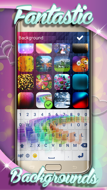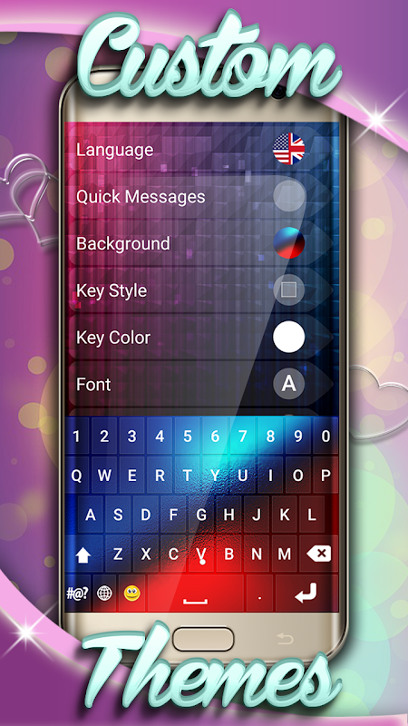 Choose a color change keyboard theme and language and enjoy typing love messages to your BF in German or French. With just a few clicks, you will get a brand new “cute keyboard” with amazing glass keyboard styles! Replace your old qwerty keypad with a brand new one for free! Download this best of girly themes and enjoy your texting and chatting with beautiful symbols and emoticons!
