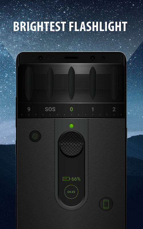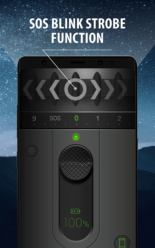 Bright LED flashlight app. Strobe light mode enables strong camera flash light