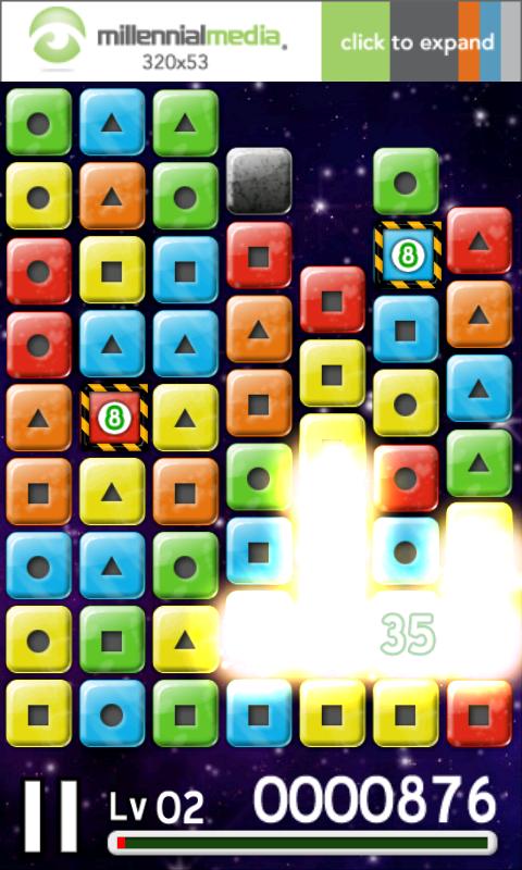 Come and try Color Link, the colorful shape puzzle that will make you addictive! In this game you will try to solve the puzzle before the color bomb explodes. The game play is simple but entertaining. You will swap between 2 blocks of same shape to collect 4 same-color blocks. It will collapse when 4 blocks are met.