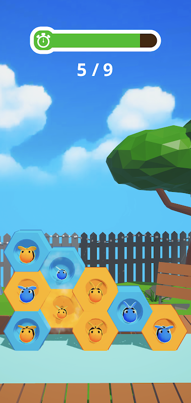 Try to put bees of each color into the corresponding color of the hive, there is a time limit.