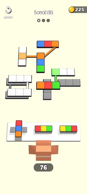 Each tile requires a specific combination of colored blocks to be destroyed. Connect the blocks while respecting the links between the tiles to solve each puzzle with precision. There are various types of blocks: line blocks and column blocks, adding to the difficulty. If you don't have the right color block, draw from the deck to get more colored pieces.