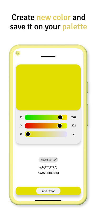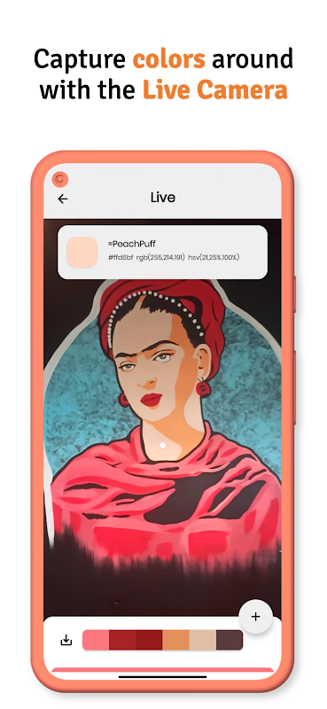 Using the camera, the codes of the surrounding colors can be easily grabbed with the color finder and color picker and saved in the color palette. Grab vibrant color!