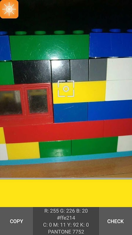 Capture colors with your smartphone camera and this program identify them for most purpose color models - RGB, CMYK, HEX and nearest PANTONE (if it possible). You also can copy all info about color for using later.
