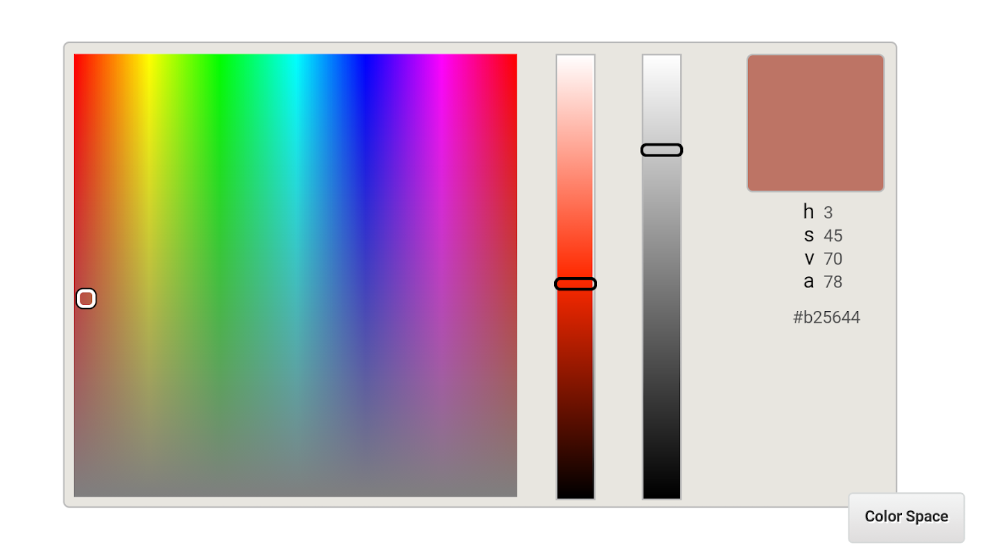 This is the color picker tool.RGB, CMYK, HSB, HEX, HSL, color space support.