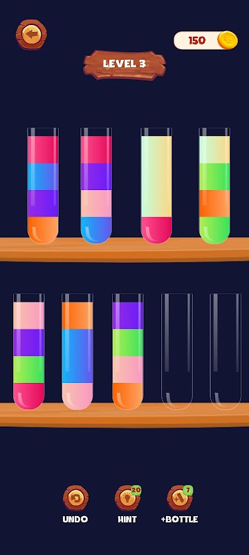 * First you can restart the sorting games level again and try to complete endless bottle fill challenge again. You can add more bottle to make your liquid sort puzzle easy.