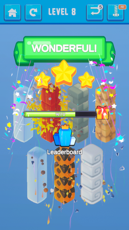 Your goal is simple: sort the element blocks: grass, magma, gold, wood, stone, and tens of new element blocks until each stack is perfectly arranged. The challenge grows with every level, testing your focus, logic, and problem-solving skills.