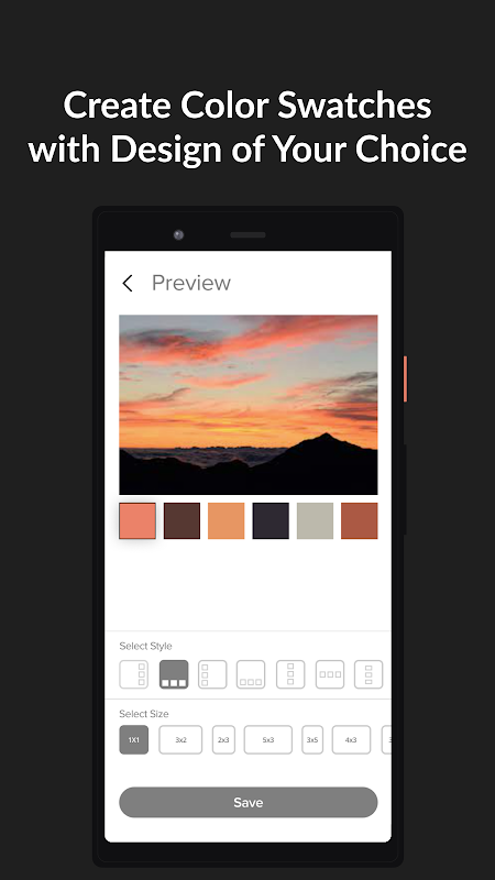 CREATE COLOR SWATCHES: Find colors you love from photos or let the app choose colors for you, creating color swatches is so much fun! Choose the photo inspiration, choose your layout, edit your colors, save them in a library, and share your color swatches to show off your expertise!
