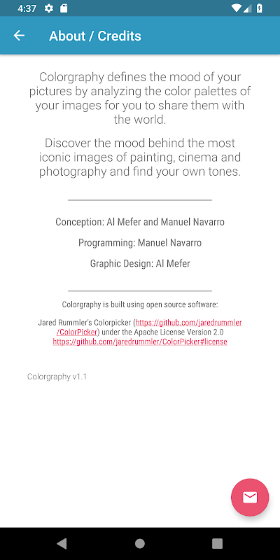 Colorgraphy defines the mood of your pictures by analyzing the color palettes of your images for you to share them with the world.