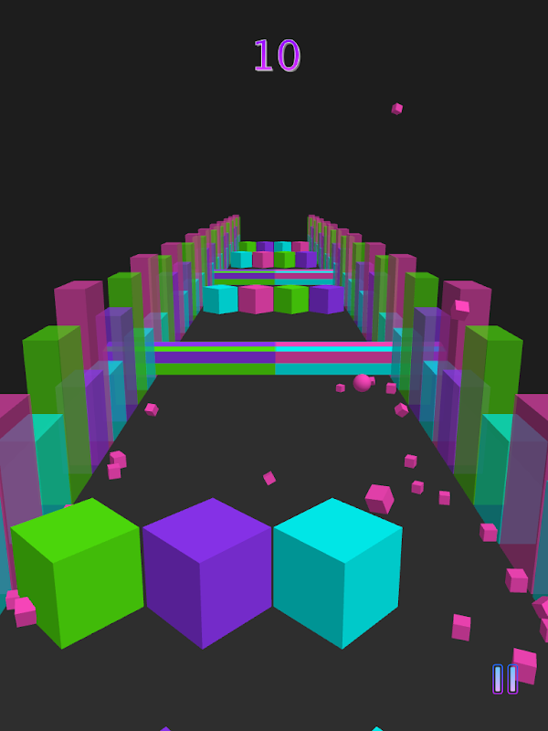 Slide your finger left and right to control the ball and collide with the cubes of the corresponding color according to the color of your ball. By colliding with the correct cube you will get 1 point.