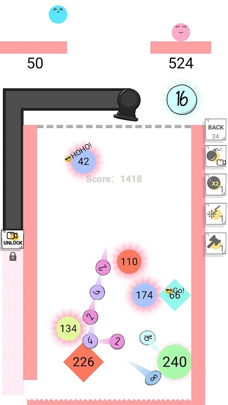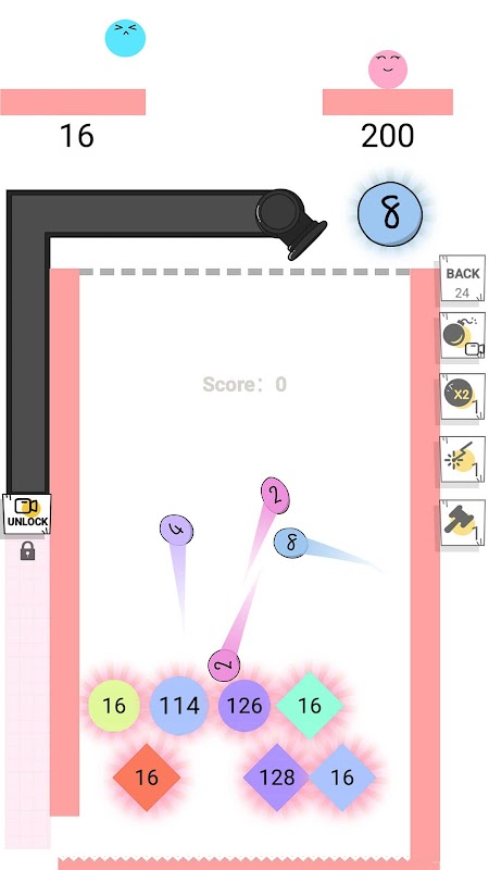 Slide to aim and release to shoot. Destroy the obstacles that are constantly moving upwards from the bottom of the screen.