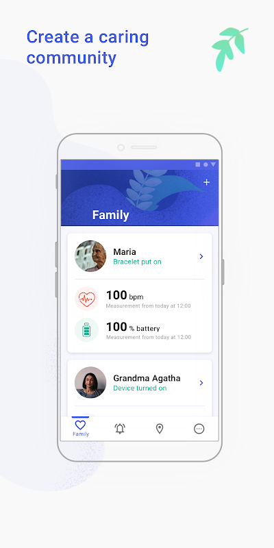 Thanks to Comarch CareMate application, the caregiver supporting a person equipped with the Comarch WristBand monitoring device is able to directly monitor the activity of their loved ones, thus increasing the senior’s comfort and safety. This is possible thanks to the integration of the wristband/key ring with account registered in the CareMate application. The device assigned to the user sends information to the account in the application, thus enabling the caregiver to remotely view data about the loved one on an ongoing basis.