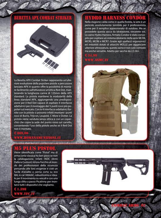Un progetto di CAFF Editrice dedicato ai professionisti della difesa sia civili che governativi, Curato e coordinato da Fabrizio Bucciarelli giornalista e scrittore, membro ricercatore per i settori militare e Intelligence dello IAI (Istituto Affari Internazionali), del Cesdis, del CSAD COMBAT ARMS tratta di attualità militare nazionale e internazionale, nuove proposte dell’industria armiera, equipaggiamenti, accessori etc., e temi di attualità militare nazionale e internazionale con approfondimenti, analisi e immagini. Ampi spazi vengono dati alle armi da guerra lunghe, passate e attuali, pistole militari e Law Enforcement alla storia, alle tecniche, alle azioni e alle armi dei tiratori di precisione (Sniper) dell’Esercito e della Polizia. E’ presente una dettagliata rassegna stampa dalle migliori riviste internazionali di armi da Guerra, pistole mitragliatrici, armi contro carro di oggi e di ieri tecniche e tematiche operative divulgabili, tecniche di sopravvivenza a sfondo tattico Varie pagine sono dedicate alla storia e all’attualità dello spionaggio e delle operazioni sotto copertura professionisti della sicurezza in impiego attuale, alle armi o strumenti di difesa non letali, coltelli militari, tattici e tecniche d'uso equipaggiamenti, accessori sia per il mondo militare.Di grande interesse I dossier su come diventare un professionista militare o della sicurezza.