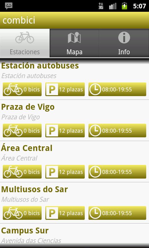 Aplicación para el Servicio de Alquiler de Bicis Públicas del Concello de Santiago de Compostela. Permite conocer el estado de las estaciones de alquiler, bicis disponibles, horario de funcionamiento y localización sobre un mapa de cada una de las estaciones. Además, permite localizar la estación más cercana a partir de la posición actual.