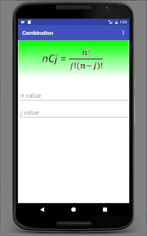 Find the total number of combination using this nCj = n!/j!(n-j)!