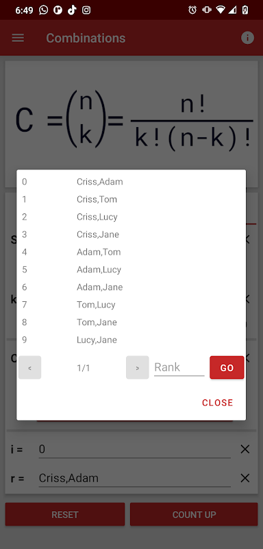 Simple app for solving combinatorial problems (Permutations, Variations, ...)