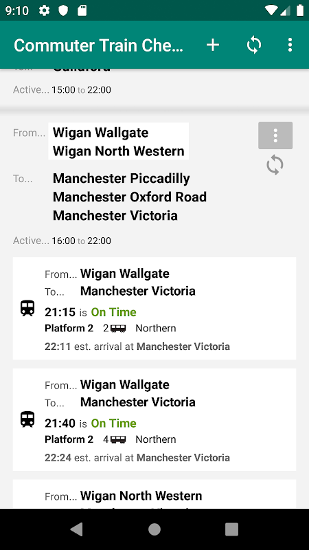 View earlier services for any given journey to display all trains still in motion, or reached their destination in the last half hour. Further, any service in the detail screen will always be available until half an hour after the train reaches its destination - allowing you to track a train's expected future progress if you are keeping an eye on a connection.