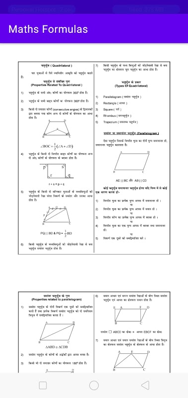 This is the best math formula app in Hindi that covers each and every math formula topic like the Algebra formula, Geometry formula Trigonometry formula, Number system, Time work, Surface area, volume, and compound interest, which will help all students and faculty and those who are preparing for all job and competitive exam.