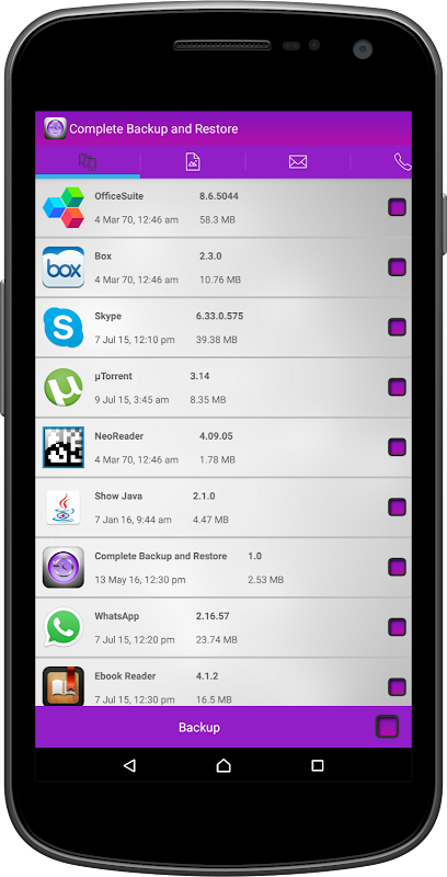 The fastest data backup and restore tool on android.You can backup your APPS ,CONTACTS, SMS, CALL LOGS and IMAGES to the SD card/Google Drive/Gmail. You will never lose your data again.