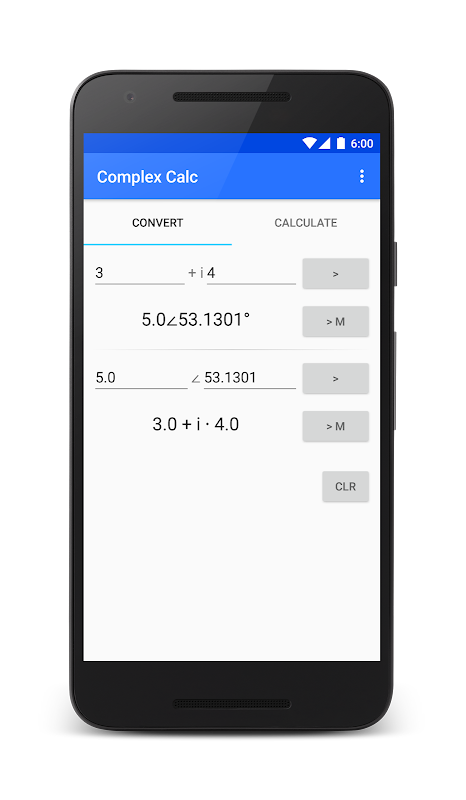 Complex Calc is an ad-free application used to find a complex number as a result of addition, subtraction, multiplication, and division of two complex numbers.