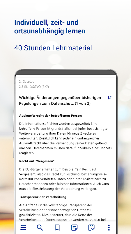 This app supports the FernUni certificate course. The first chapter is freely available for previewing. For the full content, a booking through the CeW (CeW) of the FernUniversität in Hagen is required.
