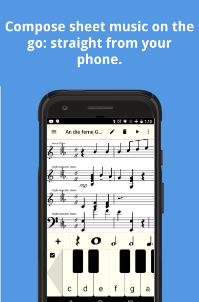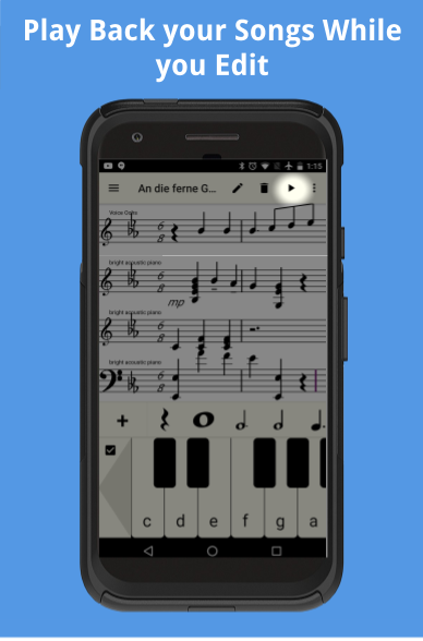 Compose music simply using a piano keyboard to enter the notes. Use this app to compose and edit sheet music. Open music XML files from popular sites like musescore and edit them.