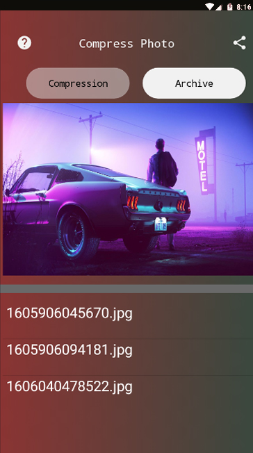 * Original pictures are not affected, compress pictures are automatically saved in the 'Copmress_Photo' directory