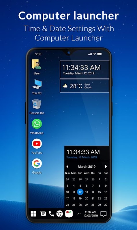 Computer launcher with your Android phone home screen looks like a Desktop launcher style wins 10 and you can view weather forecasts of your current location. Custom desktop computer design feel of the fastest wins theme wins quick search pro on the win 10 and receiving notifications from the system you will update it like wins 10 for android.