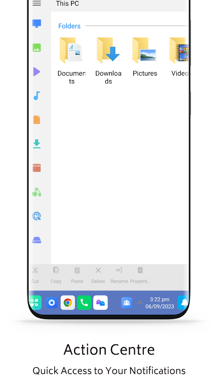 - Create Folders, Cut, Copy, Paste, Move, Share etc.