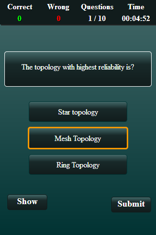 The application is very easy to use and has been designed very carefully keeping in mind the needs of the students. When a student/user makes a mistake the application indicates and also shows the correct answer. Take the Computer Networks tests repeatedly and analyze your improved results each time.