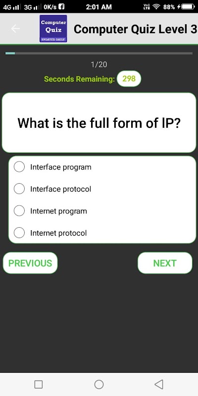 Using this Basic Computer Quiz game learn, spend some free time with it, have fun playing it. It has 3 types which is simple quiz, time quiz and hard quiz.