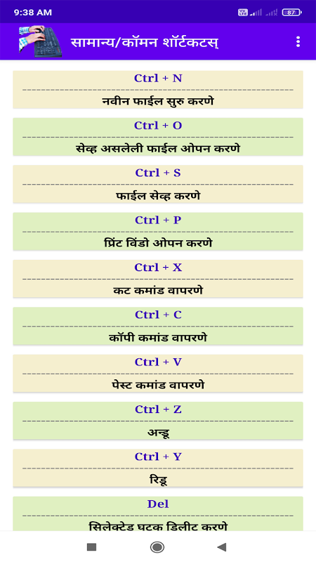Computer Keyboard Shortcut Keys Available in English,Marathi and Hindi Language!
